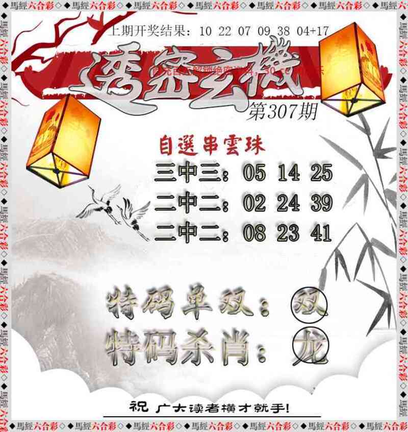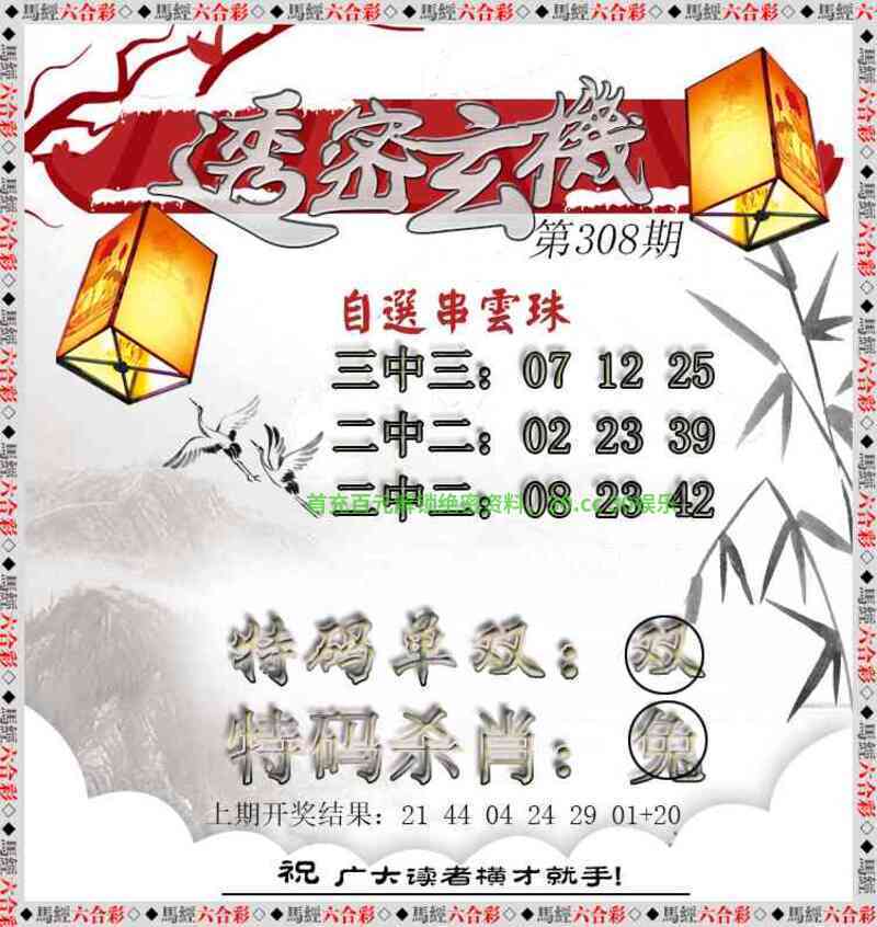 308期平特:【虎】 308期二连:【虎鸡】【兔牛】 308期三连:【虎鸡龙】【兔牛狗】 |