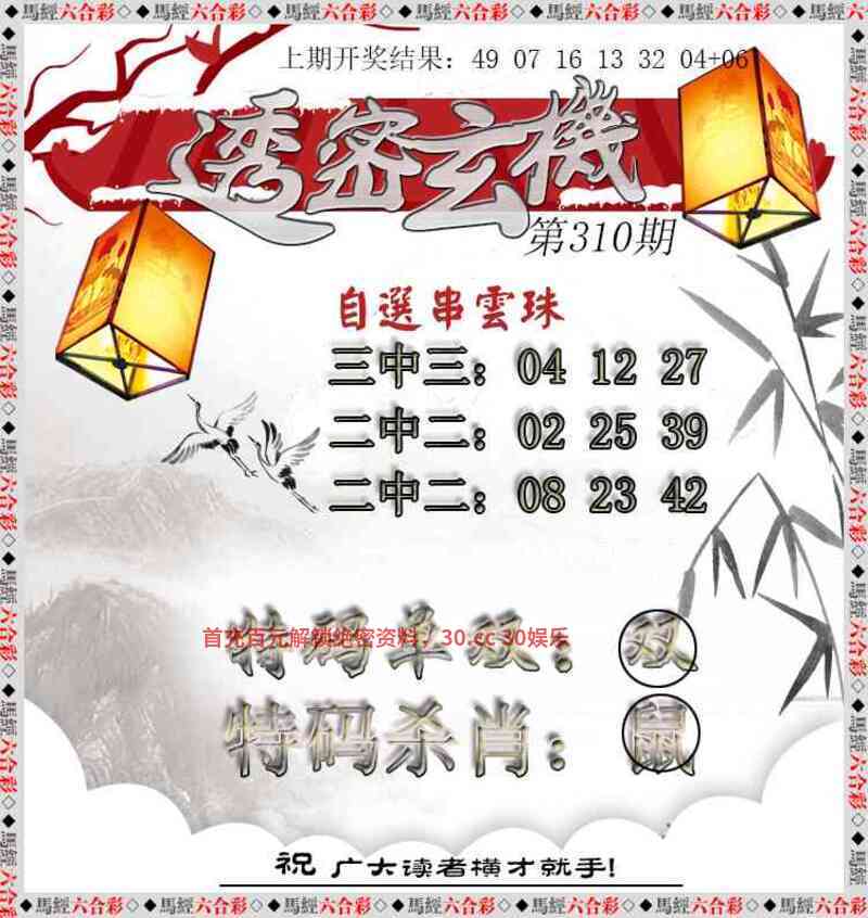 311期平特:【鸡】 311期二连:【鸡龙】【兔羊】 311期三连:【鸡龙鼠】【兔羊狗】 |